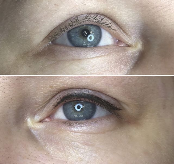 Для выполнения перманентного макияжа на верхнем или нижнем веках предварительно выбирается и согласуется с клиентом форма и «PinUp» После обезболивания специалист приступает к вырисовыванию очень тоненькой иголочкой контур в межресничной зоне с переходом в стрелку . Контур нижнего века прокрашивается максимально тонко, так как нижнее веко (в отличие от верхнего) имеет только один ряд ресниц.